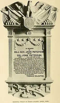 Paterson died in Lisle on July 19, 1808.[28] He was originally interred at Riverside Cemetery in Whitney Point.[28] In 1892 he was reburied at Church on the Hill Cemetery in Lenox, Massachusetts.[28]