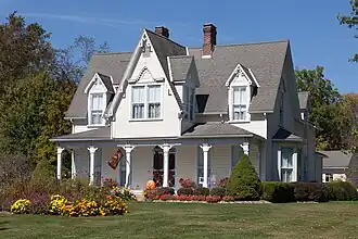 The main house was built circa 1874, and is a 1+12-story, frame dwelling with a steeply pitched gable roof. Designed in the Gothic Revival style, this house was renovated in 1990, at which time a full basement was added. Also located on the property are the contributing summer kitchen (c. 1865), barn (c. 1870), carriage house (c. 1870), smokehouse (c. 1870), and a wrought iron fence (c. 1910).[2]
