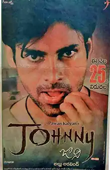 The theatrical distribution rights of Johnny were sold for over ₹21 crore, the highest price ever for a Telugu film at the time.[2] The film was released on April 25, 2003.[1] It also became the first-ever Telugu film to be released with over 250 prints worldwide including the United States.[3][4] The film was a disaster. It became the first flop in Pawan Kalyan's career after seven consecutive hits.[5] The film was acknowledged for its stylish presentation and fight sequences, but the writing was criticised.[6] Despite the film's commercial failure, its action choreography is considered to have set new standards in Telugu cinema reflecting a more grounded and believable approach to action.[7] The film was screened at the International Film Festival of India.[4]