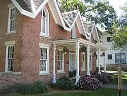 The Jones House is a good local example of Gothic Revival architecture.[1] The brick house sits on a limestone foundation. It features steep gables and pointed arch window and is considered unique to the Pontiac area.[1] Originally the house featured a porch and had wooden shingles. After its purchase by the historical society it underwent a restoration meant to be mindful of the building's architectural integrity.[1]