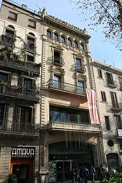 The Casa Miele, that sold domestic objects made of metal called precisely "Miele silver", a German invention of great international success and not just imitate the qualities of real silver but improved. Due to installing this luxurious and popular store, the architect Puig i Cadafalch did a total reform of the house which won an honorable mention in the Annual competition of artistic buildings. Currently the building has been transformed, but it shows his hand on some items that have survived: fragments of the railings on the ground floor, decoration of the balconies and rearrangement of the windows.[17] Transformed