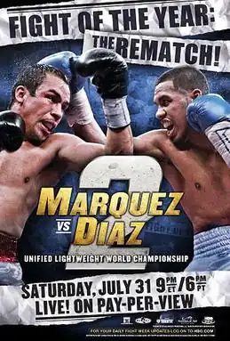 Juan Manuel Márquez vs. Juan Díaz II, billed as The Rematch, was a boxing lightweight bout for Márquez's WBA (Super), WBO, and The Ring lightweight championship. This fight is a rematch of the 2009 Fight of the Year, where Márquez knocked out Díaz in the 9th round.
