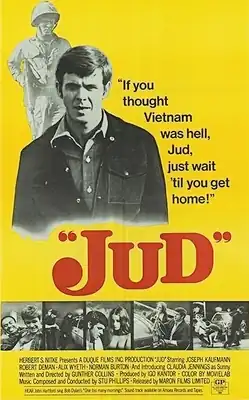 Jud is a 1971 American drama film directed by Gunther Collins and starring Joseph Kaufmann, Robert Deman and Claudia Jennings. The film was released on August 18, 1971[1] and tells the story of a Vietnam veteran adjusting back to civilian life. [2] Joseph Kaufmann, a Green Beret who pursued an acting career after his discharge from the Marines, plays the main character.