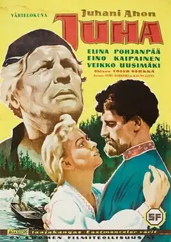 Juha (also known as Love Along a River)[1] is a 1956 Finnish drama film produced, written, and directed by Toivo Särkkä. The film is based on a 1911 novel Juha by Juhani Aho, telling the story of the farm host Juha and his young wife Marja, whose usual everyday life is disrupted when a Karelian traveling merchant arrives and starts seducing the passionate Marja. The film stars Elina Pohjanpää, Eino Kaipainen and Veikko Uusimäki.