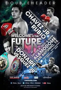 Julio César Chávez Jr. vs. Marco Antonio Rubio, billed as Welcome to the Future, was a boxing middleweight bout for the WBC world title. The bout was held on February 4, 2012, at the Alamodome in San Antonio, Texas, United States.[1] where 14,000 fans were attending.[2]