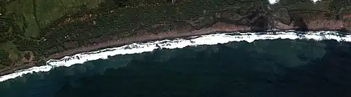 Many wooden cafes and shops within 20 meters (66 ft) of the shore were completely removed by the tsunami at Pangandaran, and severe damage still occurred to unreinforced masonry that was within several hundred meters, but some hotels that were constructed well held up better. The villages of Batu Hiu and Batu Kara, both to the west of Pangandaran, experienced similar damage. Other severe damage was seen at Marsawah village, Bulakbenda, where all buildings had been removed down to their foundation within 150 meters (490 ft) of the water line, and even 300–500 m (980–1,640 ft) further inland there were many buildings that were totally destroyed. Witnesses reported that waves were breaking several hundred meters inland at that location.[13]
