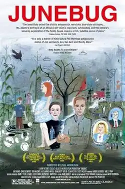 The film premiered at the 2005 Sundance Film Festival, where Adams won a Special Jury Prize for her performance.[5] On review aggregator website Rotten Tomatoes, Junebug has an approval rating of 86% based on 135 reviews, and an average rating of 7.50/10.[6] The website's critical consensus states, "Aided and abetted by a wonderful cast, director Phil Morrison transforms familiar material into an understated and resonant comedy".[6] Metacritic assigned the film a weighted average score of 80 out of 100, based on 34 critics, indicating "generally favorable" reviews.[7]