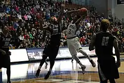 Robinson (#3) is defended by LIU-Brooklyn's Aakim Saintil