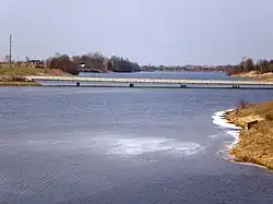 The Juodkiškiai Reservoir is an artificial lake in Kėdainiai District Municipality, central Lithuania. It is located 2 kilometres (1.2 mi) east from Kėdainiai, next to Taučiūnai village.[2] It was created in 1980, when a dam on the Obelis river was built next to Juodkiškiai hamlet.[1] In 1995, the dam was reconstructed and a small hydroelectric plant (of 510 kW) built.
