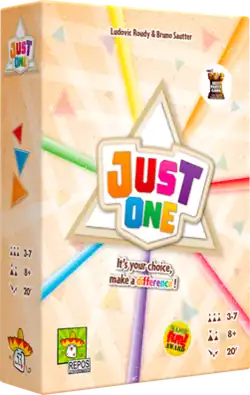 Just One is a cooperative party game for 3 to 7 players, designed by Ludovic Roudy and Bruno Sautter, illustrated by Éric Azagury and Florian Poullet, and published by Repos Production. In each round of the game, players write down a one word clue for the round's guesser. They must then attempt to guess the secret word based on the submitted clues with identical ones removed. Released in 2018, the game has been nominated for numerous awards.