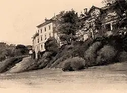 The center of Parádfürdő is occupied by a large park, which was once the garden of the nearby castle. On the right bank of the Tarna River, on top of a high hill, the former castle of the Károlyi family still stands today.[1]