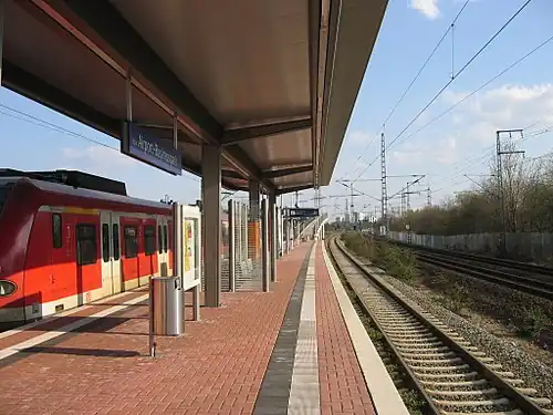 Köln Airport-Businesspark is a railway station in Gremberghoven, Cologne in western Germany. It is served by Rhine-Ruhr S-Bahn lines S12 between Düren or Köln-Ehrenfeld and Troisdorf every 20 minutes Monday–Saturday and every 30 minutes on Sunday.[5][6]