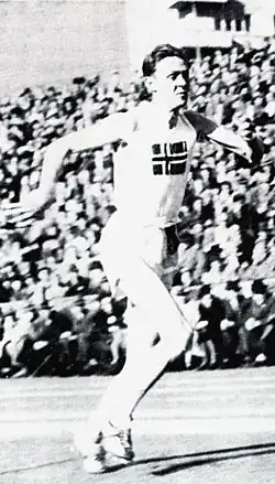 His personal best long jump was 7.465 metres, achieved in September 1937 at Bislett stadion.[8] Representing the club IK Grane, he took the silver medal at the Norwegian championships in 1938, behind Nils Uhlin Hansen, and in 1939 he won the gold medal ahead of Nils Uhlin Hansen and Eugen Haugland. Then, no Norwegian championships were staged until 1946.[9]