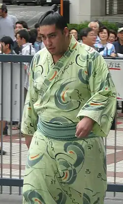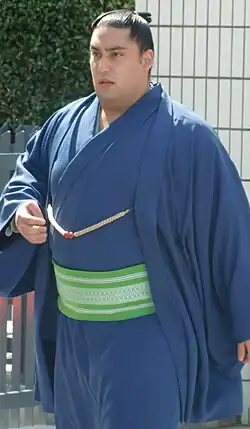 Kaisei Ichirō (Japanese: 魁聖 一郎; born December 18, 1986 as Ricardo Sugano (菅野 リカルド, Sugano Rikarudo)) is sumo elder Tomozuna, an Asakayama stable coach from São Paulo, Brazil. A third generation Japanese Brazilian, Kaisei made his debut in September 2006 and reached the top makuuchi division in May 2011.[1][2][3] His highest rank was sekiwake. He was runner-up twice, once in the July 2013 tournament and another in the March 2018 tournament. He received three Fighting Spirit prizes.