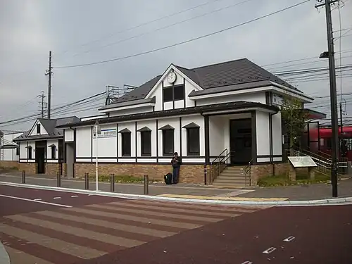 Kakamigahara-Shiyakusho-mae Station (各務原市役所前駅, Kakamigahara Shiyakusho-mae-eki) is a railway station on the Meitetsu Kakamigahara Line in the city of Kakamigahara, Gifu Prefecture, Japan, operated by the private railway operator Meitetsu.