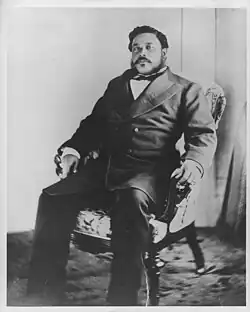San Francisco's enthusiastic reception for the dark-skinned monarch was less than a decade after the American Civil War had divided the nation over the issue of enslavement of persons of color. Giving non-white people equal access to public accommodations would be fought through legislatures and courts for years to come.[45] The African-American newspaper Pacific Appeal noted the irony and speculated, "... there has either been a sudden abandonment of colorphobia prejudice, or an extraordinary amount of toadyism to a crown head by the San Francisco American people."[46]