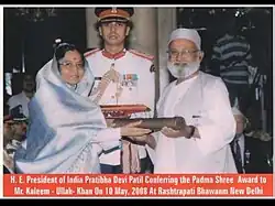 ![]() Khan (right) receiving the Padma Shri award in 2008 | |