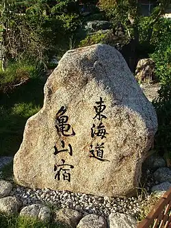 Kameyama-juku (亀山宿, Kameyama-juku) was the forty-sixth of the fifty-three stations (shukuba) of the Tōkaidō connecting Edo with Kyoto in Edo period Japan. It was located in former Ise Province in what is now the center of the city of Kameyama, Mie Prefecture, Japan.