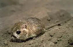 Kangaroo rats live in arid and semiarid areas, particularly on sandy or soft soils[4] which are suitable for burrowing. They can, however, vary in both geographic range and habitat. Their elevation range depends on the species; they are found from below sea level to at least 7,100 feet (the type locality of D. ordii priscus).[9] They are sensitive to extreme temperatures and remain in their burrows during rain storms and other forms of inclement weather.[4] Kangaroo rats are preyed on by coyotes, foxes, badgers, weasels, owls, and snakes.