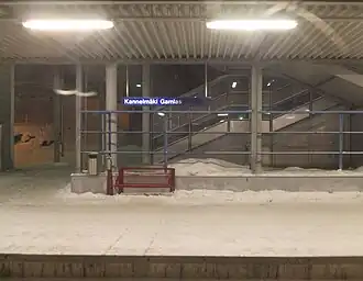 Kannelmäki railway station (Finnish: Kannelmäen rautatieasema, Swedish: Gamlas järnvägsstation) is a railway station on the Helsinki commuter rail network located in northern Helsinki, Finland. It is located approximately nine kilometres to the north/northwest of Helsinki Central railway station.