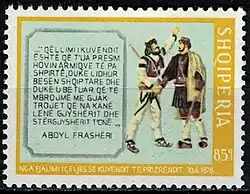 1968 Albanian stamp depicting the Proclamation of Prizren