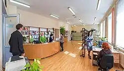 The publishing section was established in 1948 to invigorate the organization's publishing activities. S. S. Shleymovich was the first to head it. In 1968, as the amount of publications by the Karelian Branch of the Academy of Sciences of the USSR grew substantially, the publishing section was transformed into the Editorial and Publishing Department (EPD).[39] In 1971 the EPD became authorized to publish the journal of proceedings of the Karelian Branch. In 1973 the instant printing shop was set up to publish collected volumes and monographic books without having to engage external book publishers. The number of limited circulation editions (express publication of research results, pre-prints of conference papers and abstracts, etc.) increased remarkably. In 1992 the Editorial and Publishing Department and the instant printing shop were merged into one unit to promote the efficiency of their operation. The time period from manuscript submission to final product became much shorter, the entire publishing process was optimized.[43] A new phase in EPD development started in the 1990s with the onset of the computer era. Technical facilities of the editorial group were updated. Layout and design were computerized. Through renovation of the publishing process the quality of the printed products was notably improved, their volumes enlarged and the preparation and production cycle shortened.[43] The EPD now implements the entire book publishing cycle. The principal concern for the EPD is to produce its editions so that they meet all modern standards.[44]