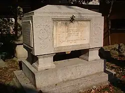 Shattered by the exposure of the fraud, Gützlaff died in Hong Kong in 1851, leaving a £30,000 fortune,[7]: 304 equivalent to over 5 million pounds in 2024. He was buried in Hong Kong Cemetery.