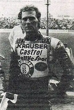 He also forged a career in conventional speedway, earning 38 international caps and participating in four consecutive Speedway World Championship finals from 1983 until 1986[4] and a fifth final in 1989.[5]