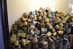 Empty Zyklon B poison gas canisters found by the Red Army at the end of World War II at Auschwitz