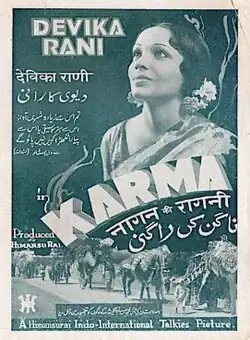 Karma, an "Indo-German-British" collaboration, was released two years after the Alam Ara (1931), the first Indian talkie. Karma was made targeting the international audience.[4] The film was entirely shot in India while the post-production process was carried out in Stoll Studios, London.[3] The film was the first talkie produced by Rai.[5]