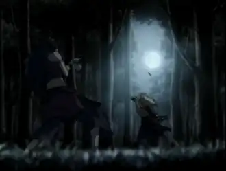 In a village burdened by the Fire Nation's pollution, Katara disguises herself as the river spirit the Painted Lady in order to help the village.[33] While staying with the semi-reclusive Hama, the protagonists learn she is a waterbender from the Southern Tribe who was imprisoned by the Fire Nation. Later, she offers to teach Katara a waterbending technique called "bloodbending", which enables physical control of animals and humans. When Katara refuses to learn this technique, Hama uses it on Aang and Sokka, forcing Katara to use the technique herself on Hama.[34] When Prince Zuko joins the protagonists after the Invasion fails and gains everyone's trust, he fails to do so with Katara until he assists her in finding the man who was responsible for killing her mother, during the process of which she uses bloodbending. Though deciding not to take her revenge nor forgive, she does come to terms with Zuko and accepts him as her friend.