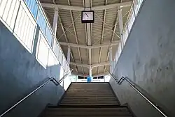 Over the years, the technical condition of the station and its accompanying infrastructure deteriorated.[10][11] It wasn't until 14 November 2014 that PKP Polskie Linie Kolejowe announced a tender for the revitalization of the Katowice–Chorzów Batory railway line no. 137, which included a complete overhaul of the Katowice Załęże station. The renovation plan involved demolishing old elements such as the small architectural features (including an open waiting room and a closed ticket office), the platform surface, railings, and the roof.[11] A new platform was to be built, along with the reconstruction of underground installations, and the platform was to receive a new surface.[11] The platform walls were to be made of concrete, with edge tiles designed to assist visually impaired individuals, and the platform surface was to be replaced with concrete paving stones instead of the existing concrete slabs.[11] New stainless steel railings, a new lighting system, passenger information devices (including speakers and clocks), and new small architectural elements such as trash bins, information boards, station name signs, pictograms, and directional signs were planned. The new shelter was to be made of steel, with a gabled roof.[11]