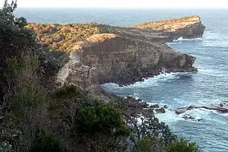 The reserve has a variety of different vegetation communities, such as exposed headlands, dry eucalyptus woodland, wet and dry heathland. Two small littoral rainforest patches remain, they are floristically similar to those at Sea Acres National Park not far to the north.[3] There is speculation that the extremely rare Scented Acronychia grows at Kattang.[4] Perpendicular Point has cliffs that descend 40 metres (130 ft) suddenly to the sea below. Bushwalking is popular, particularly in late winter and early spring when the abundant wildflowers are in season.