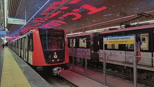 Kayaşehir Merkez is an underground rapid transit station on the M3 line of the Istanbul Metro.[2] It is located on Kayaşehir Boulevard in the Kayabaşı district of Başakşehir. The M3 portion of the station was opened on 8 April 2023 with the Onurkent-Kayaşehir Merkez expansion built by the Ministry of Transport and Infrastructure.[3]