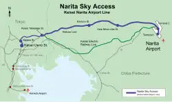 The Keisei Narita Airport Line (京成成田空港線, Keisei Narita Kūkō-sen) is a Japanese railway line connecting Keisei-Takasago Station and Narita Airport Terminal 1 Station. The entire route from Keisei Ueno Station, including the Keisei Main Line as far as Keisei-Takasago, is branded Narita Sky Access (成田スカイアクセス, Narita Sukai Akusesu).