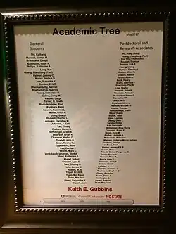 He has been the supervisor of 47 PhD students and 53 postdoctoral associates, of whom 56 now hold faculty positions in the United States, Europe (Czech Republic, France, Germany, Ireland, Italy, Poland, Portugal, Spain, UK), Asia (Mainland China, Hong Kong (China), India, Japan, Singapore) and Australia,[1][2][3] among them Ravi Radhakrishnan, Coray Colina and George Jackson, FRS.[4]