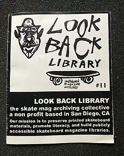 Look Back Library (LBL) is a non-profit organization dedicated to preserving the history of skateboard magazines, and other printed skateboard materials, through traveling exhibits and the building of publicly accessible skateboard magazine libraries.[1][2][3]