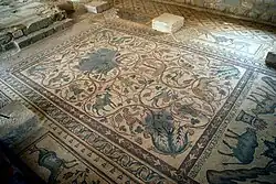 Khirbet al-Mukhayyat (Arabic: خربة المُخيَّط), also commonly known as the town of Nebo, is a village in Madaba Governorate in Jordan. The village is about 3.5 km from Mount Nebo, also known as Siyagha. Many Byzantine churches were found in the village, including the Church of Saint Lot and Saint Procopius, the church of St. George, and the al-Kaniseh Monastery located a short distance down in a valley below the hill.[2] The town also contains material culture from a wide range of phases from the Chalcolithic to the Ottoman period including several Hellenistic features, an Iron Age fort, and a number of caves, tombs, cisterns and agricultural infrastructure.[3]