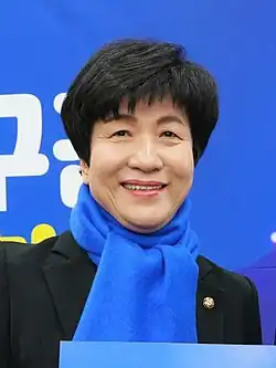 In 1999 she first entered politics when she was recruited by Kim Dae-jung.[3] She has consistently took senior roles in her party and its succeeding parties such as its secretary-general and one of elected members of its Supreme Council.[4]