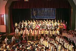 KGV is the oldest of all schools in the English Schools Foundation, as well as the oldest international school in Hong Kong. It first opened in 1894 on Nathan Road,[1] and originally catered for the children of British people living in Kowloon. At the time, the school occupied just one small building. It was destroyed in a typhoon in 1896, and Kowloon College opened in its place in 1902. A major opening ceremony took place and was attended by many of Hong Kong's elite, including Major General Gascoigne, the Apostolic Vicar of the territory's diocese Louis Piazzoli, and the Colonial Secretary J.H. Stewart Lockhart. The school was built using donations from Hong Kong businessman Sir Robert Hotung.[2] The school was subsequently renamed the Kowloon British School, then the Central British School, and later King George V School.