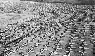 War Assets Administration came to Kingman AAF to set up Sales & Storage Depot No. 41. Depot 41 was to sell off the base buildings and equipment. Not only that, it would store aircraft from the Army Air Force. Some reports estimated that approximately 10,000 warbirds were flown to Kingman in 1945 and 1946 for storage and sale, but official records indicate that number ended up being closer to 5,500. 38 of the 118 B-32 Dominator Very Heavy (VH) bombers, built by Convair at Fort Worth, Texas, were flown there, including several straight from the assembly line. Five of Kingman's B-32s had participated in the 312th Bombardment Group's overseas activities in the closing days of World War II.