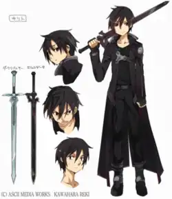Character design by abec for the light novels, which include his dual swords, Elucidator and Dark Repulser