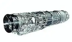 - Compressor: 2 spool axial, 4 low pressure stages, 9 high pressure stages