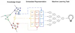 In representation learning, knowledge graph embedding (KGE), also called knowledge representation learning (KRL), or multi-relation learning,[1] is a machine learning task of learning a low-dimensional representation of a knowledge graph's entities and relations while preserving their semantic meaning.[1][2][3] Leveraging their embedded representation, knowledge graphs (KGs) can be used for various applications such as link prediction, triple classification, entity recognition, clustering, and relation extraction.[1][4]