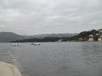 There are two settlements on the island called Gornje Čelo and Donje Čelo.[7] Both are situated in their respective coves and connected with a 1.5-kilometre (0.9-mile) paved road.[8] Koločep is car free but many paths and walkways criss-cross the island.
