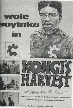 Kongi's Harvest is a 1970s Nigerian drama film directed by Ossie Davis. The film was adapted from a screenplay by Wole Soyinka adapted from his 1965 play of the same name.[1][2] Soyinka, a Nigerian playwright, poet, and the first African to be awarded the Nobel Prize in Literature in 1986, also starred in the leading role as the dictator of an African nation.[3][4]