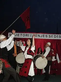 - ^ "Shtrohet sofra tradicionale e muzikës gjakovare" (in Albanian). Koha Ditore.