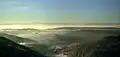 The climate of the upland differs significantly from the surrounding area. The snowpack covers the area for 80 days a year and the rainy season lasts from April until September. Annual precipitation varies between 650–700 mm, higher than in surrounding regions, the median temperature is lower, from 0.5 to 1.0°C. Average temperature is 19°C in summer and -3°C in winter.