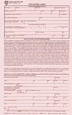 At the hearing, the NYPD must demonstrate (1) that it followed proper procedure in arresting the person and taking the vehicle, (2) that it is likely to win the civil forfeiture action, and (3) that returning the vehicle would cause a danger to the public.[3] If the NYPD fails to demonstrate one of these three things, the vehicle is returned to its owner pending the outcome of the separate civil forfeiture action.[3]