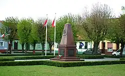 Following the joint German-Soviet invasion of Poland, which started World War II in September 1939, the town was occupied by Germany until 1945 and local Poles were subjected to various crimes. On October 20, 1939, the German Einsatzgruppe VI carried out a public execution of 17 Poles at the main square as part of the Intelligenzaktion.[4] Among the victims were a bank director, teacher, merchant, forester, military officer, landowners and mayor of the nearby town of Dolsk.[4] It was one of many massacres of Poles committed by Germany on October 20–23 across the region in attempt to pacify and terrorize the Polish population.[5] The first expulsions of Poles were carried out by Germany in winter of 1939–1940.[6] Under German occupation the town's name was changed to Tiefenbach and then Schonz in attempt to erase traces of Polish origin.